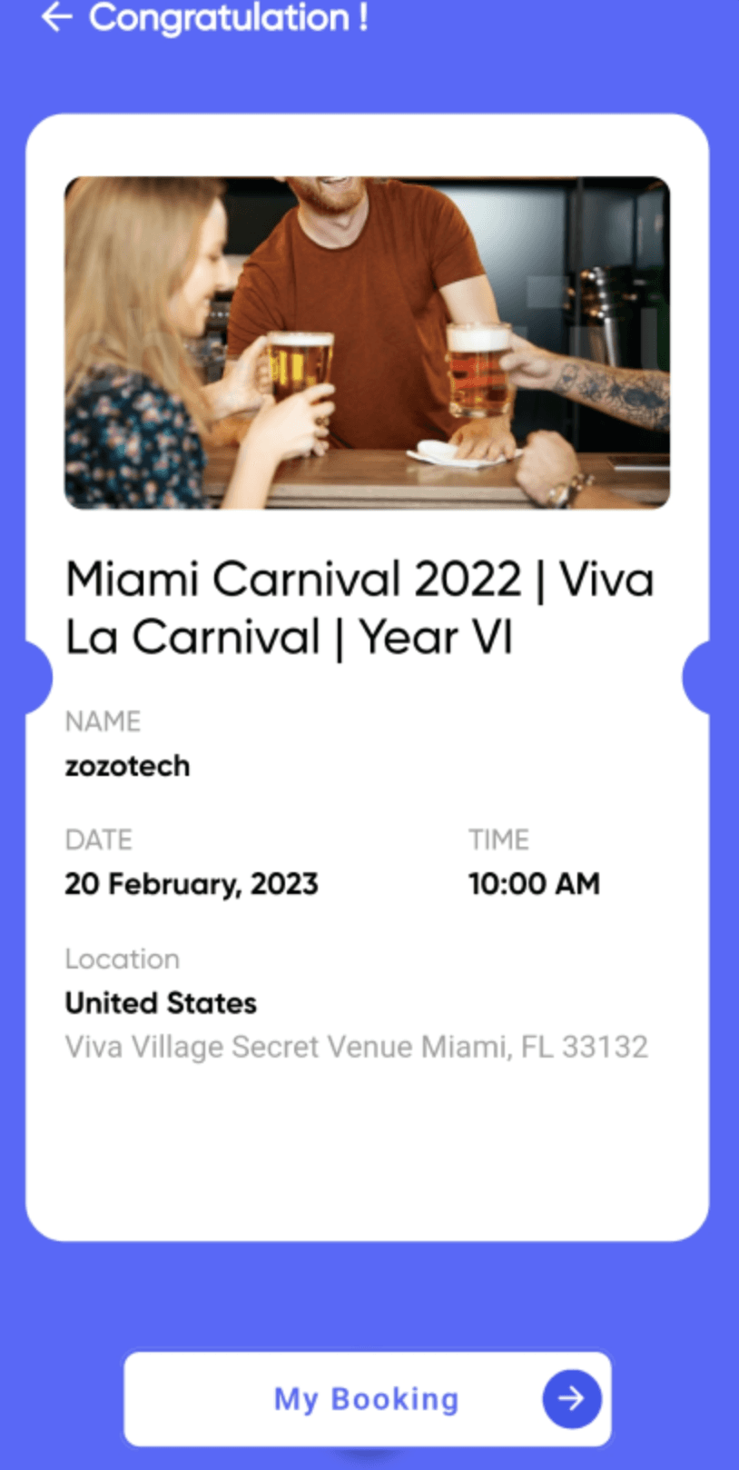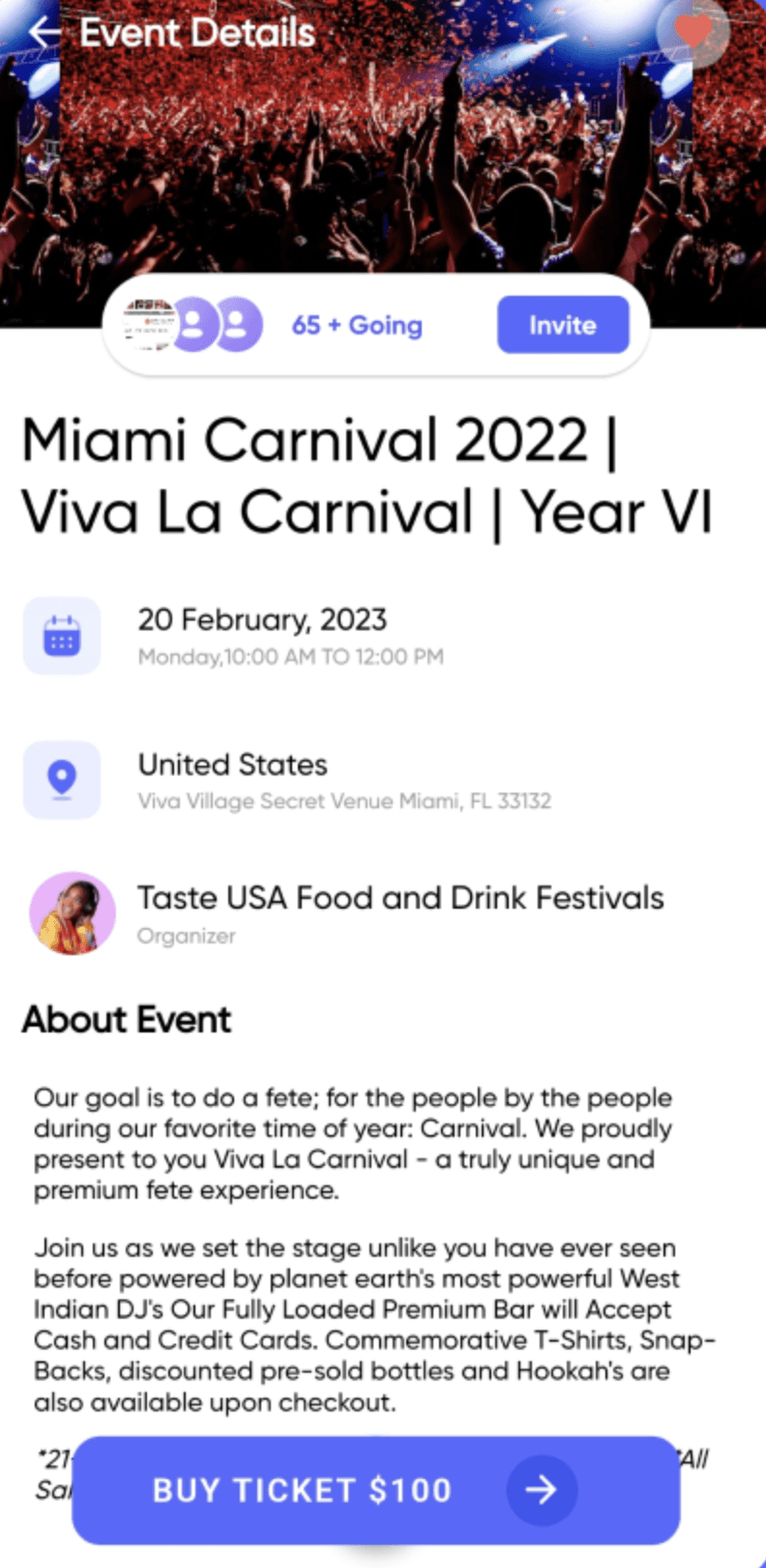 Event Details: Access comprehensive event details such as date, time, location, photo gallery, organizer information, total participants, and more.