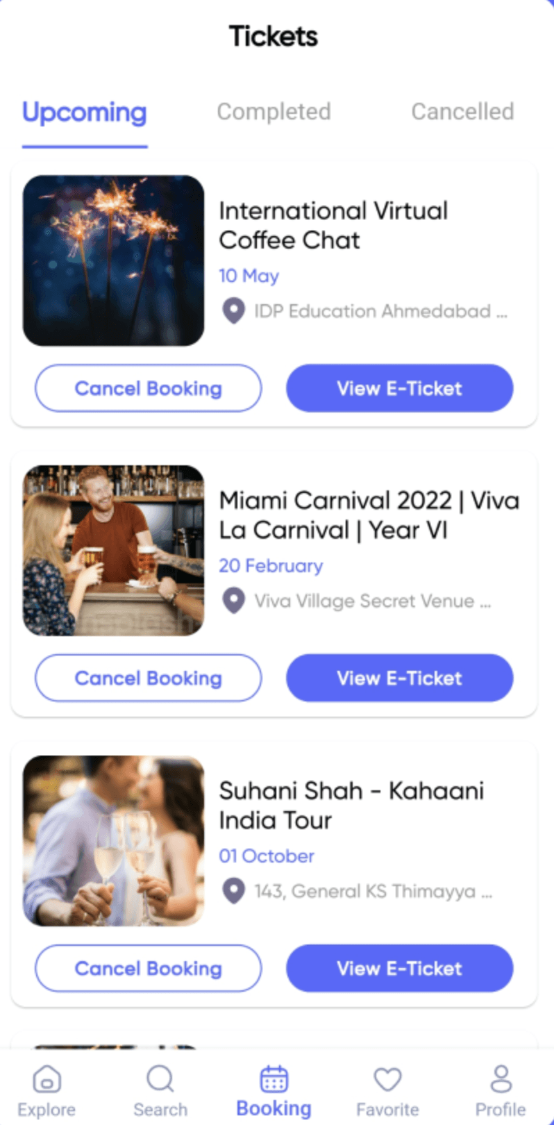Events Catalogue: Explore a diverse range of events, including current happenings, upcoming events, trending occasions, nearby gatherings, and those scheduled for the upcoming month.