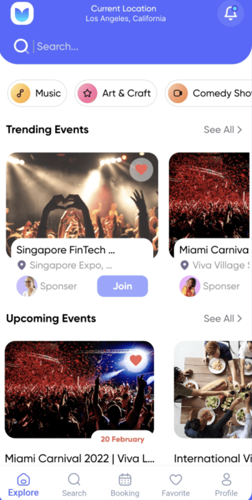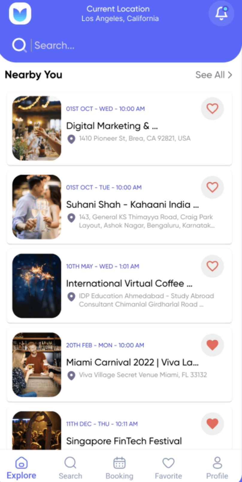 Current Location: Utilize GPS technology to identify the user’s location, showing nearby events. Users can also manually select a location.